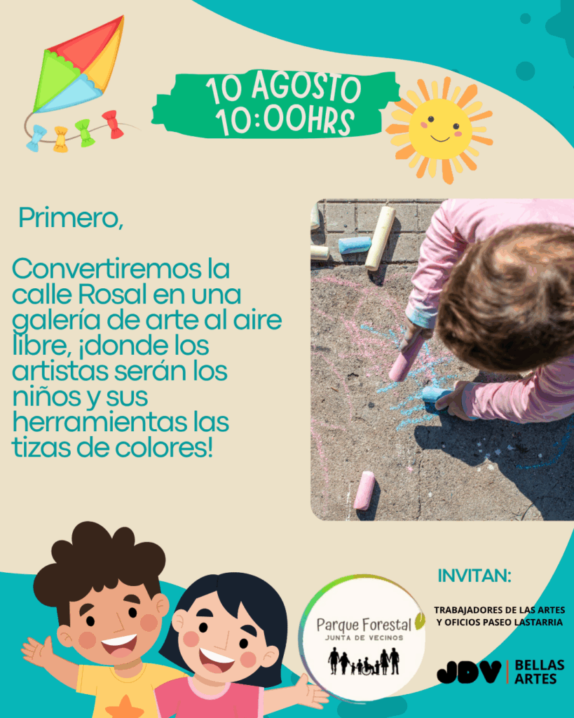 Las Juntas de Vecinos de Parque Forestal y Bellas Artes, en conjunto con los Trabajadores de las Artes y Oficios del Paseo Lastarria, ¡tenemos el agrado de invitar a todas las familias a un día lleno de juegos, arte y sorpresas!