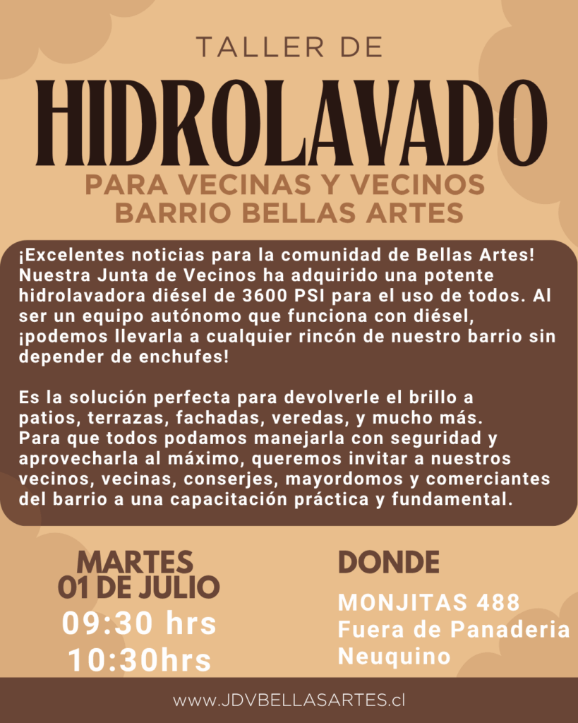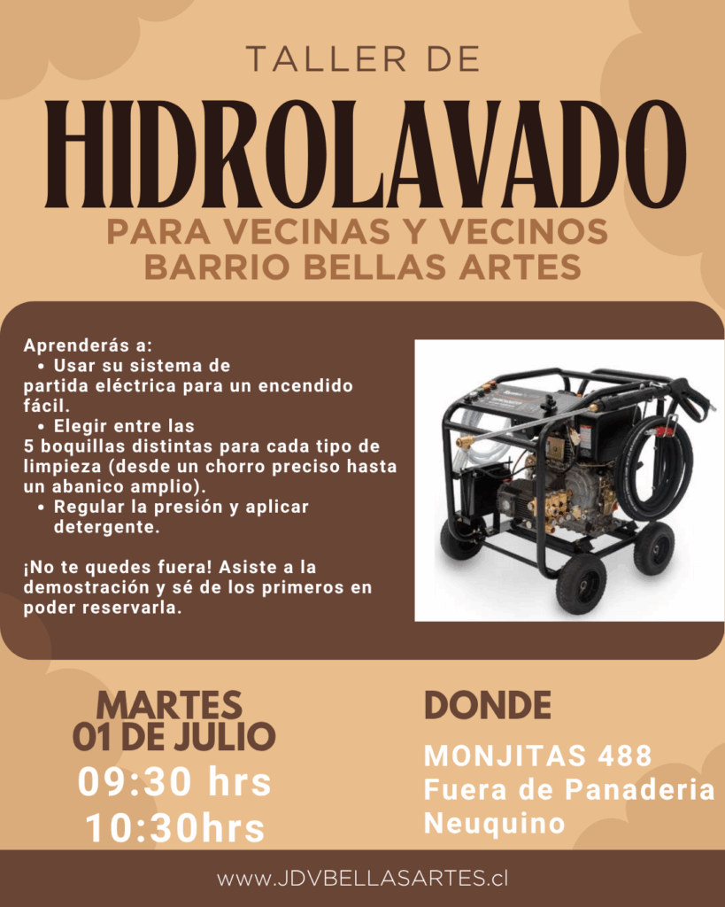 Nuestra Junta de Vecinos ha adquirido una potente hidrolavadora diésel de 3600 PSI para el uso de todos. Al ser un equipo autónomo que funciona con diésel, ¡podemos llevarla a cualquier rincón de nuestro barrio sin depender de enchufes!