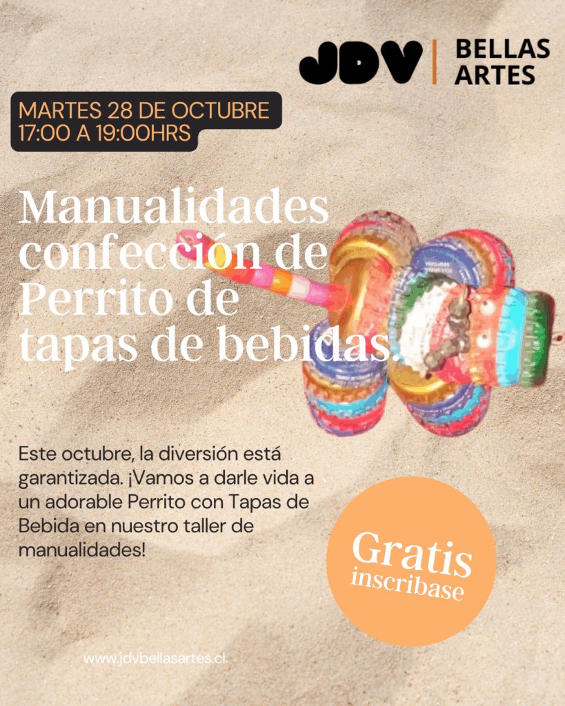 🗓️ Fecha: Martes 28 de Octubre ⏰ Hora: 17:00 a 19:00 hrs 👩🏫 Tallerista: Sra. Francisca Arraras 📍 Lugar: Nuestra sede JDV Bellas Artes